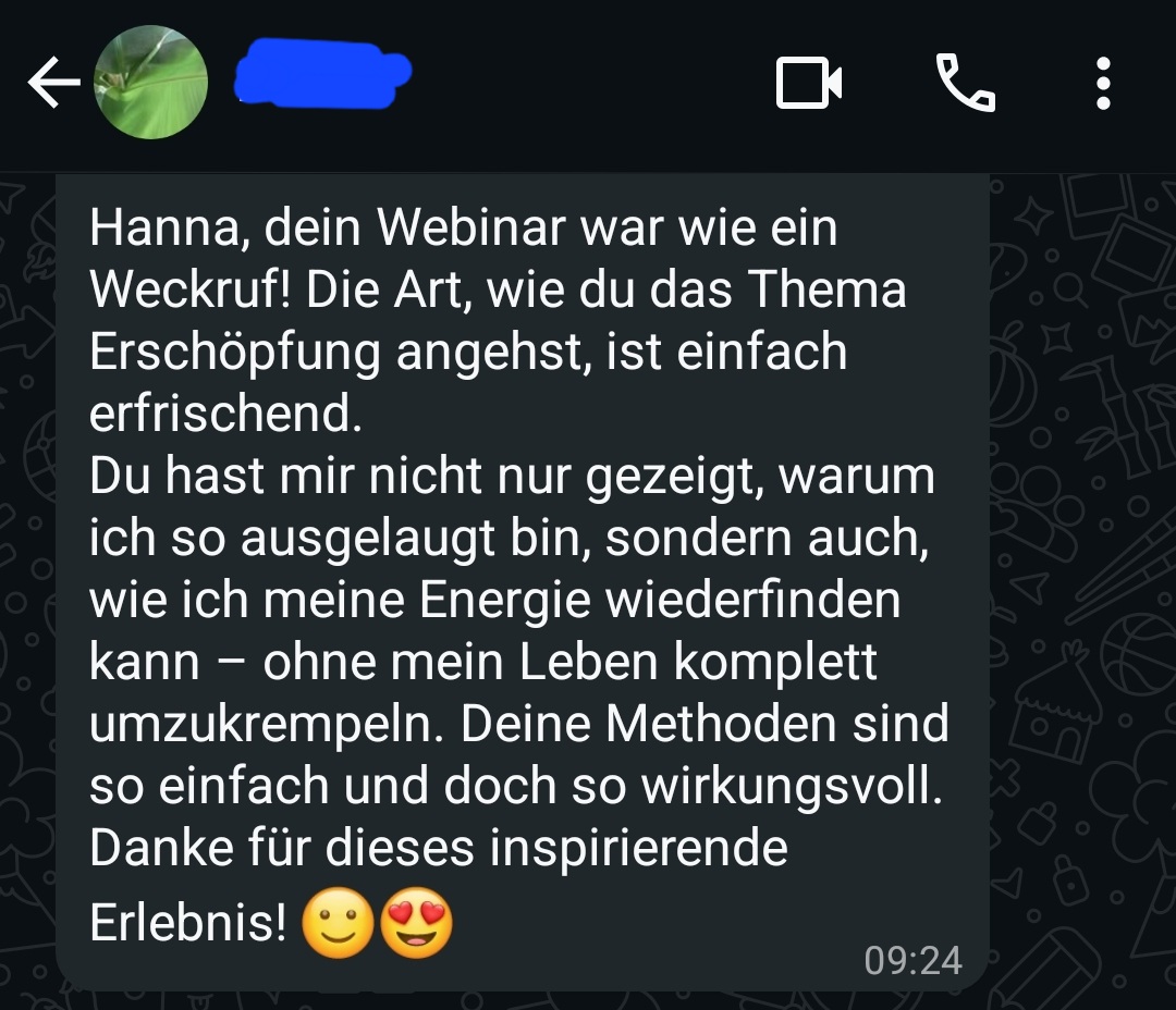 Heute bin ich Energie- & Schlaf-Coach und helfe Powerfrauen, ihr Nervensystem zu beruhigen, Stress abzubauen und wieder in ihre Energie zu kommen – ohne ihr ganzes Leben umzukrempeln.